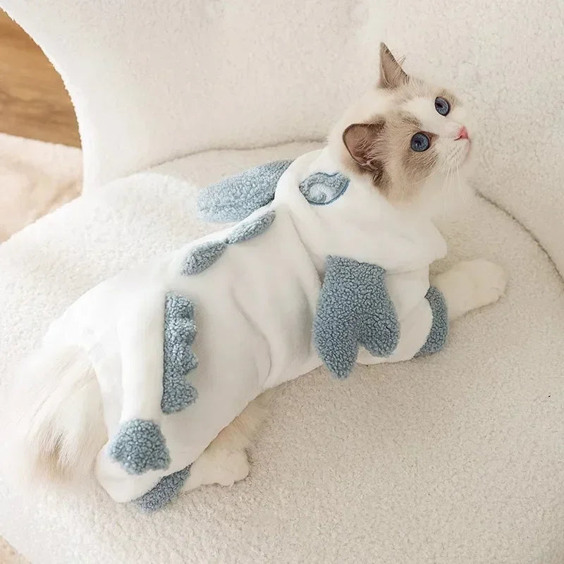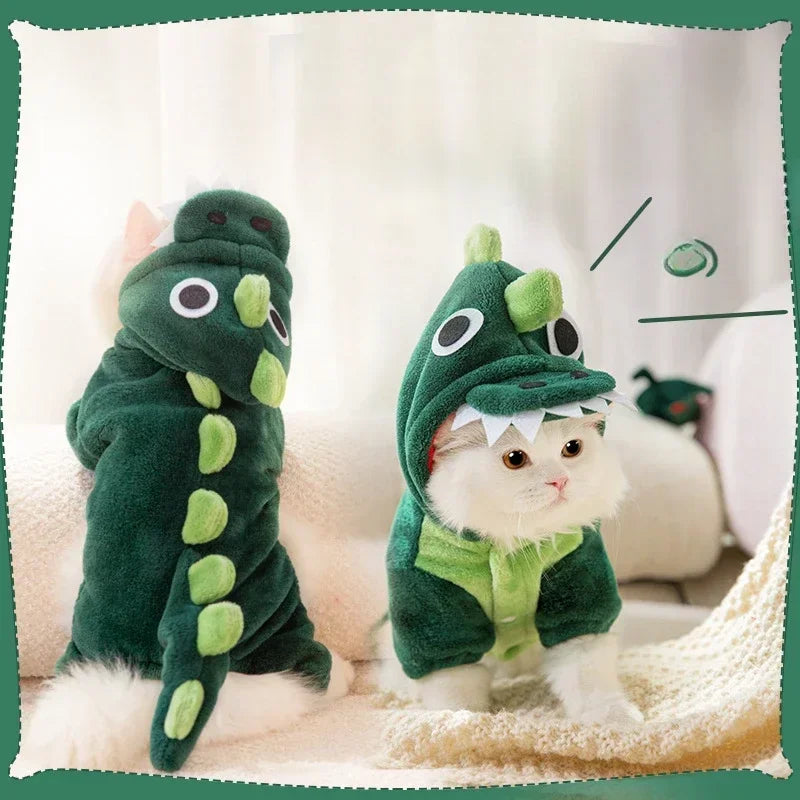 Autumn and Winter Cat Clothes Cute Dinosaur Transformation Outfit Little Dog in Cotton Coat with Four Leg Funny Home Pet Clothes