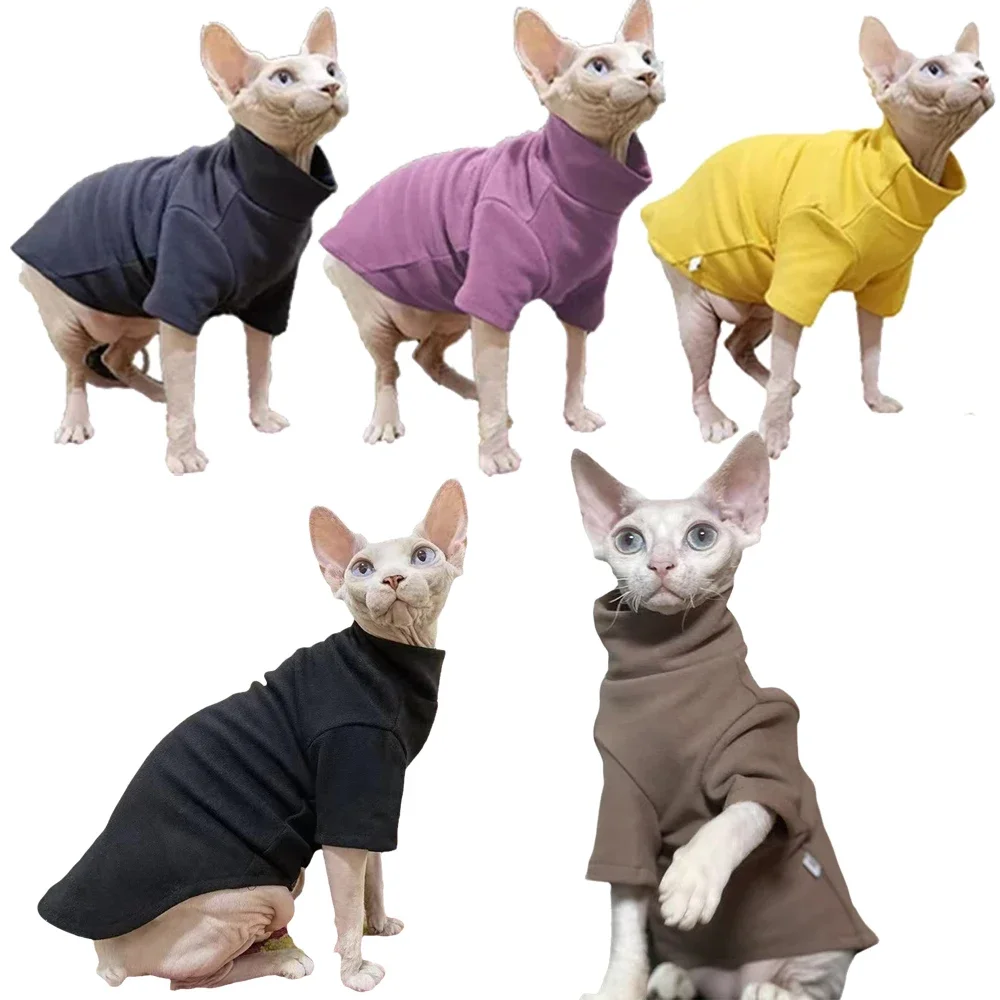 Spring Autumn Cat Clothes Solid Color Sphynx Turtleneck Warm Fleece Pet Pullovers ropa para gatos